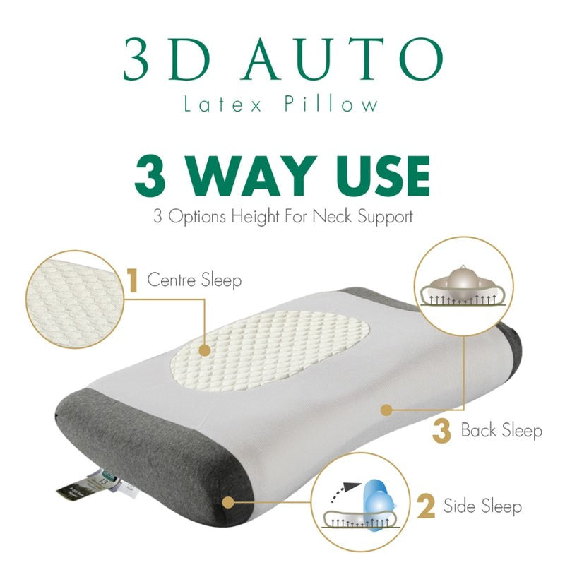 The GETHA 100% Natural Latex 3D Auto Pillow is a multi-functional pillow with soft density, recommended for side and back sleepers with different sleeping preferences.