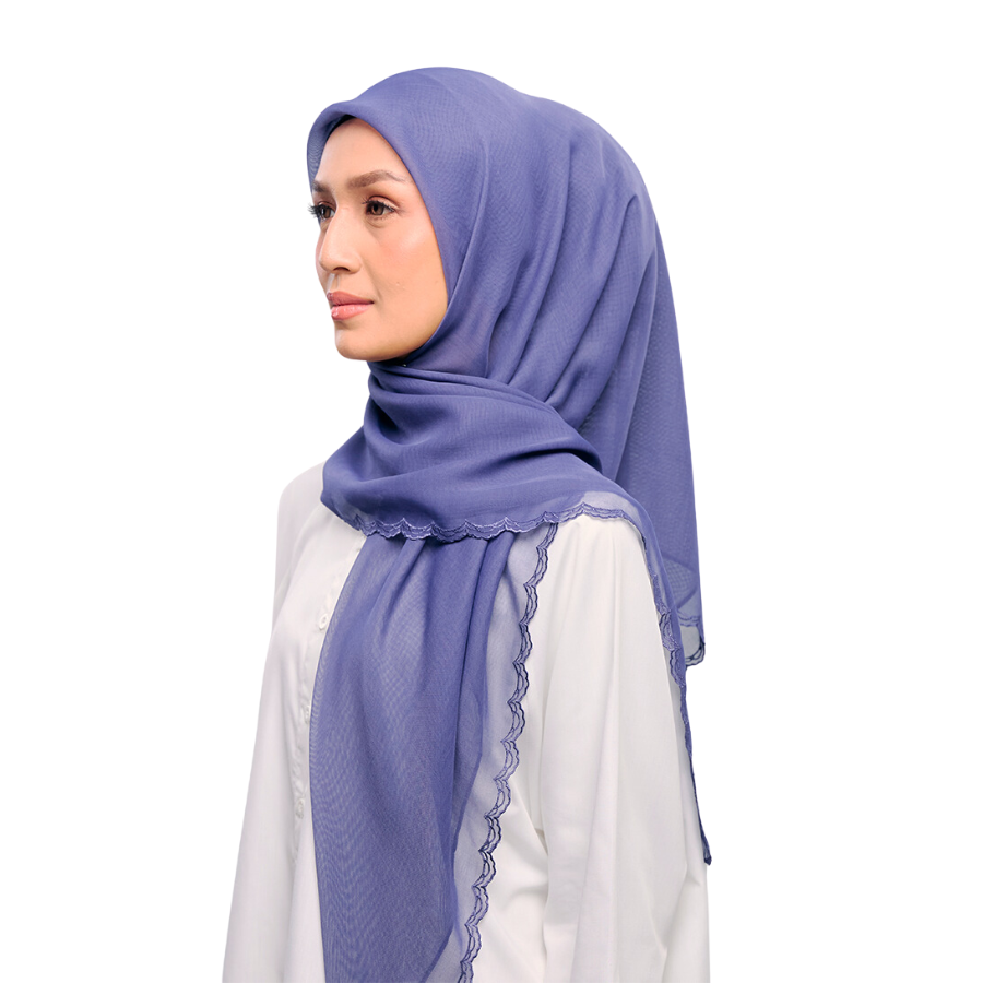 Crafted from high-quality material, this hijab offers a smooth and breathable feel, perfect for all-day wear. Its timeless design can be styled with the embroidered edges as the highlight or paired with a minimalist baby seam for a sleek finish. The Sulam Kenanga collection promises minimal upkeep, with a soft drape that flows effortlessly, ensuring you stay elegant and comfortable throughout your day.