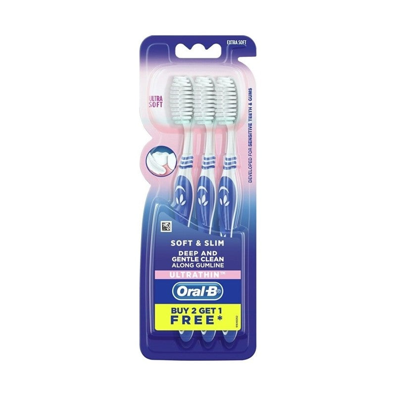 Oral B Soft & Slim toothbrush provides a deep and gentle clean along gumline. It has 100% 0.01mm Ultra Thin bristles tips that provides a deep clean without hurting gums.
