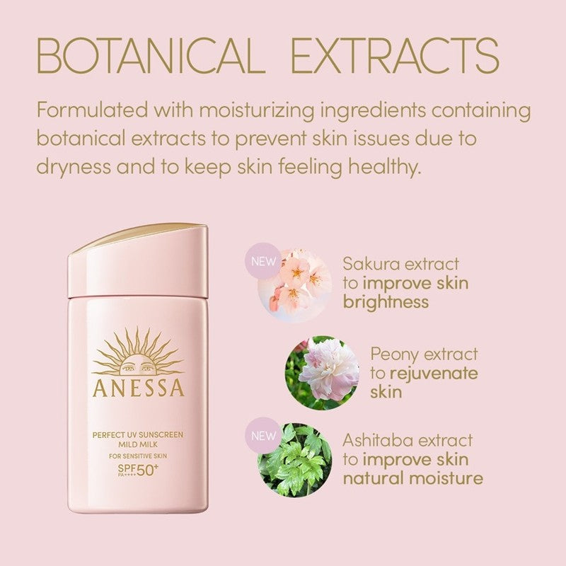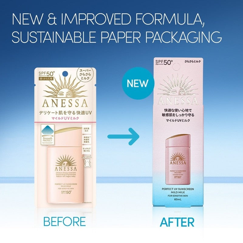The New & Improved Anessa Perfect UV Sunscreen Skincare Mild Milk N is also made with 50% skincare ingredient that helps provides long lasting hydration to skin. This product also contains treatment effects on environmental damage that helps protect skin from UV rays and microparticles in the air. We take Bioplastic made bottle instead of 100% plastic to dedicate CO2 emission.