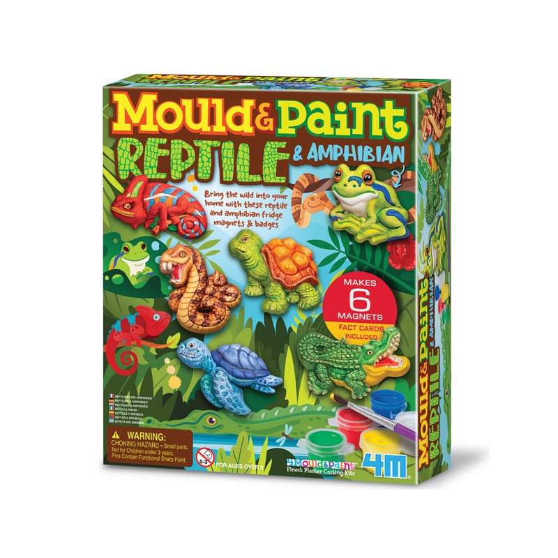 Create your own Reptile & Amphibian magnets or pins by using the mould, plaster powder, paints and brush included in the Kit. A fun mould and paint set that encourages children to use their imagination to create and paint these plaster fridge magnets and badge. This activity promotes patience as children have to mould and then wait for it to set, so it makes a great project over a weekend or holiday.