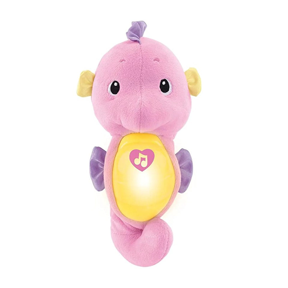 The soft and cuddly Soothe & Glow Seahorse soother toy helps soothe your baby with a gentle, comforting light, 8 lullaby and classical tunes, and soothing ocean sounds. After approximately 5 minutes of continuous play, the sounds and music fade and the glowing light dims to dark. This take-along plush soother makes a great gift for any new parent!