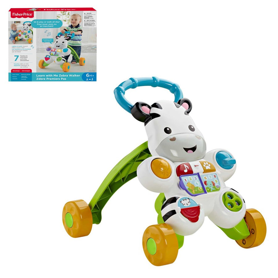 From teaching first words to encouraging first steps, the Fisher-Price® Learn with Me Zebra walker is the kind of first friend you want for your little one! Spin, flip, roll, click, twist. This zebra’s full of busy, hands-on activities for sitting babies. Your tot can turn the book page or press the light-up buttons to learn all about ABC’s & 123’s through sing-along songs and phrases with new animal friends!