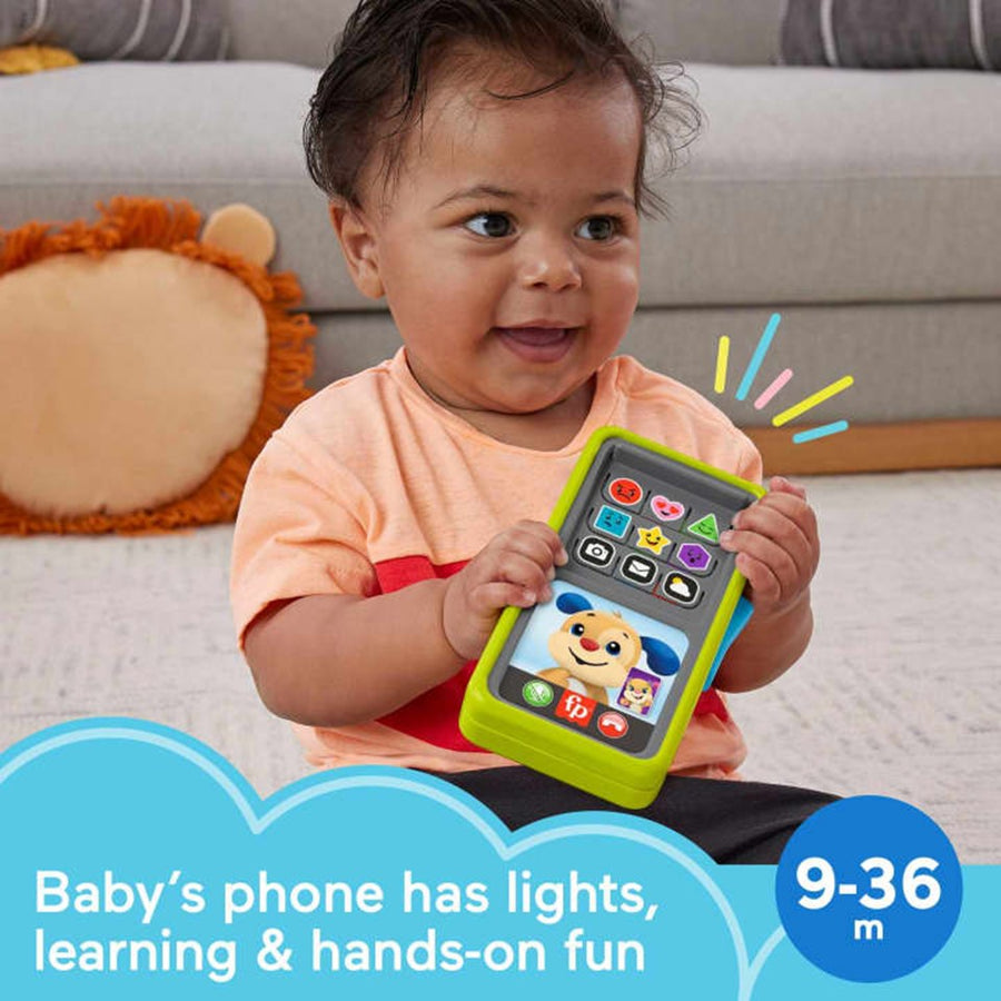 Swipe up for learning fun with the Laugh & Learn® 2-in-1 Slide to Learn Smartphone toy from Fisher-Price®. This interactive toy phone looks like the real thing and features your baby’s Laugh & Learn® friends, Puppy and Sis, plus two learning modes with “app” and number buttons to press to activate lights, songs and sounds. As toddlers press, slide, and toggle the activities on the pretend phone, they’ll give fine motor skills a good workout while educational songs and phrases introduce them to the numbers and counting, shapes, colors, and more.