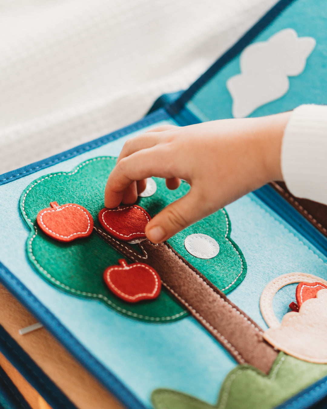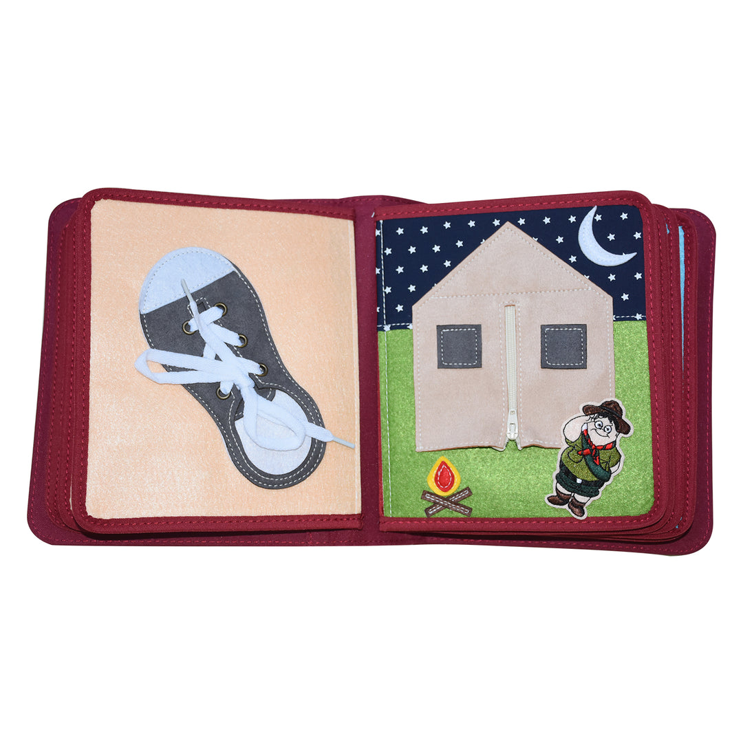 Utilize interactive cloth books during crucial developmental stages to improve hand-eye coordination and strengthen small muscles through daily activities. Examples include tying shoelaces, braiding hair, buttoning, identifying shapes, counting, and differentiating colors, all of which involve basic hand muscle exercises.