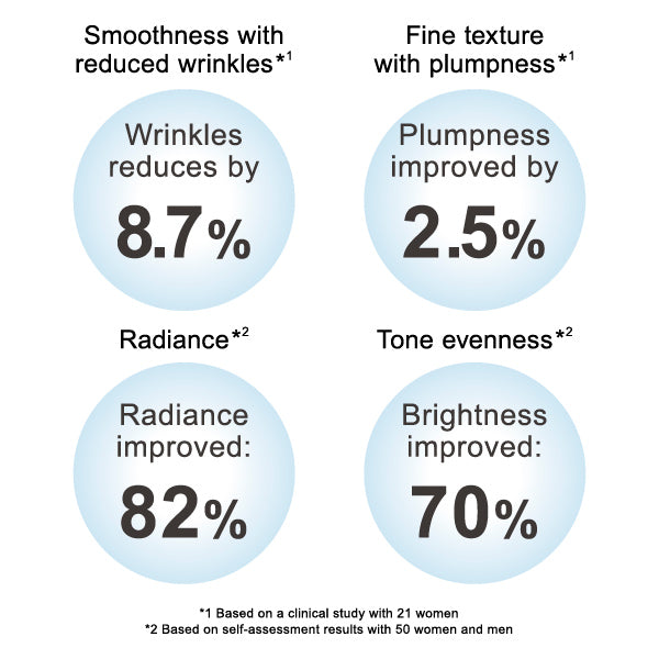 Smooths, plumps, boosts radiance, and evens tone for blissful skin.
