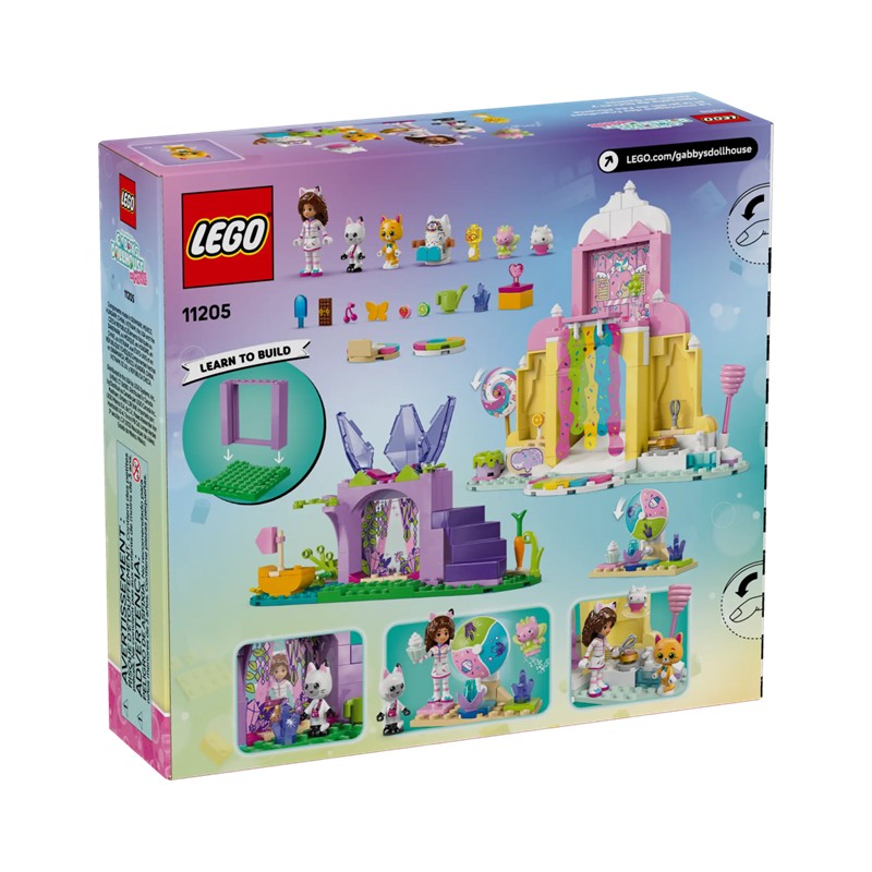 The creative playset features 2 movie locations and many LEGO figures, including Gabby, Pandy Paws and Kitty Fairy. Sweet Treat Mountain immerses little ones into a magical world of sugary treats. The characters can slide through the colorful waterfall riding on donut floats. Kitty Garden is a fantastical retreat where Kitty Fairy sits on her crystal flower throne and gems are hidden for kids to find. Colorful pictorial instructions, a large Starter Brick and separate bags with 1 model per bag make the creative experience fast and fun for little builders.
