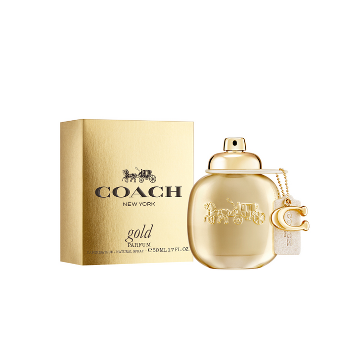 Coach Gold is inspired by sun-drenched brillance and an invitation to unlock your inner glow. Shimmering with sparkling pink peppercorn, the radiant parfum pairs the sensuality of vanilla notes with a comforting almond blossom accord, leaving an addictive trail of golden amber.