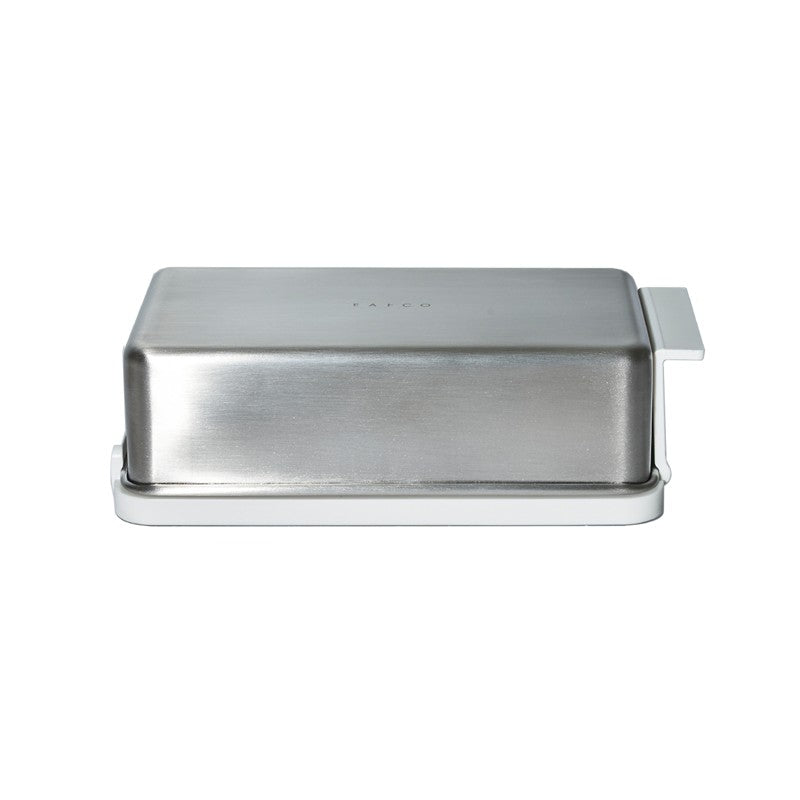 - A butter case combining stainless steel and resin, designed to enhance container sealing.