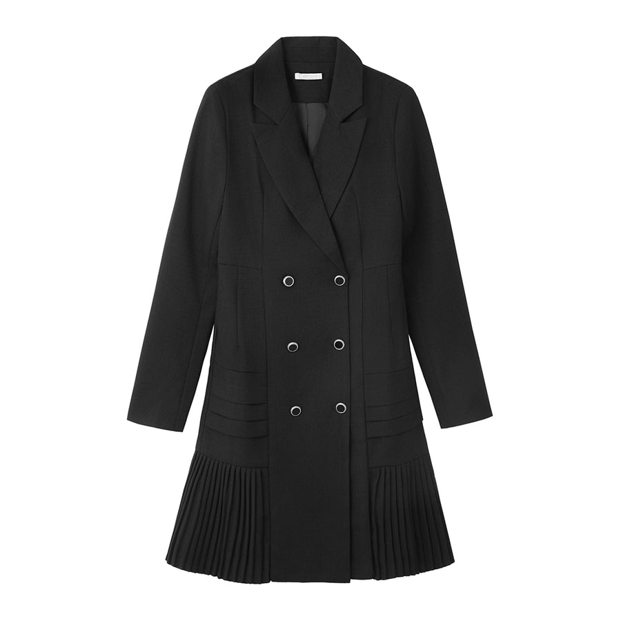 This Cultivation black blazer dress combines tailored sophistication with modern elegance, making it ideal for formal occasions. Crafted with precise lines and a structured fit, it enhances your silhouette while offering a polished, professional appearance. Perfectly suited for business events or upscale gatherings, it provides both style and confidence in one refined piece.