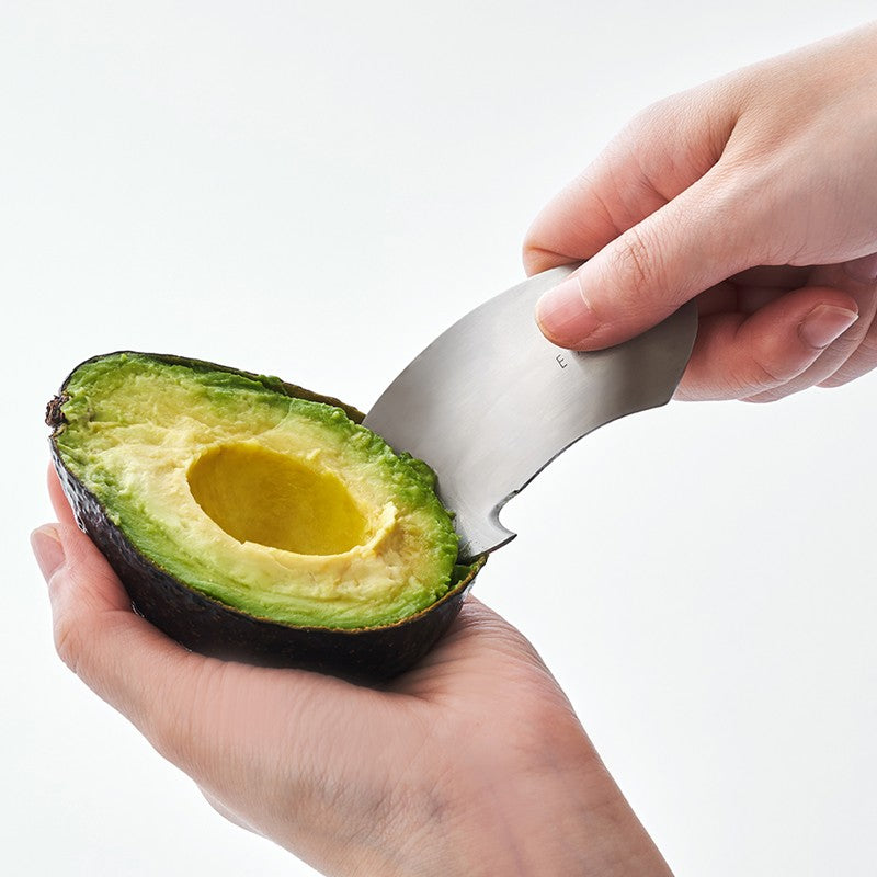 - With this tool, you can make an incision in the skin, remove the seed, and scoop out the flesh with the spoon-shaped part.