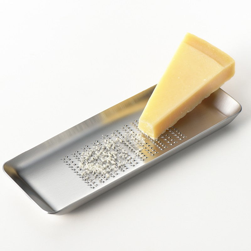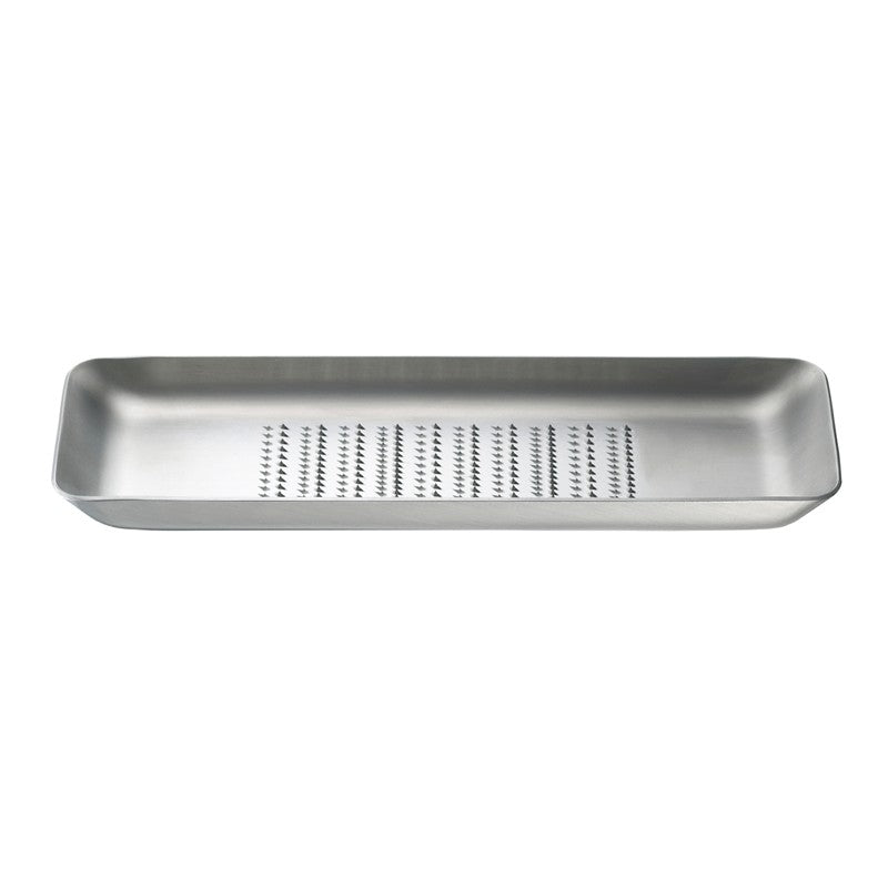 - The tray-shaped design with curved edges prevents grated juices from spilling, allowing you to add condiments to dishes like soups and stews while they dissolve.
