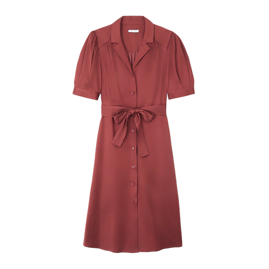 This Cultivation semi-formal dress features a button front design and a waist ribbon that accentuates your silhouette with subtle elegance. Its structured collar and short sleeves blend professionalism with comfort, making it an ideal choice for office wear. The dress combines refined details with a polished look, ensuring you present a confident, sophisticated appearance throughout your workday.