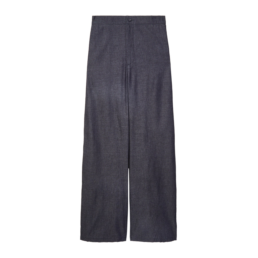 These dark blue denim pants feature a soft fabric that ensures all-day comfort. The stretchable back waist offers flexibility and a tailored fit, while the smooth front waist enhances a streamlined silhouette. Equipped with a classic zipper and button closure, these long pants blend practicality with a refined, expert design suitable for versatile styling.