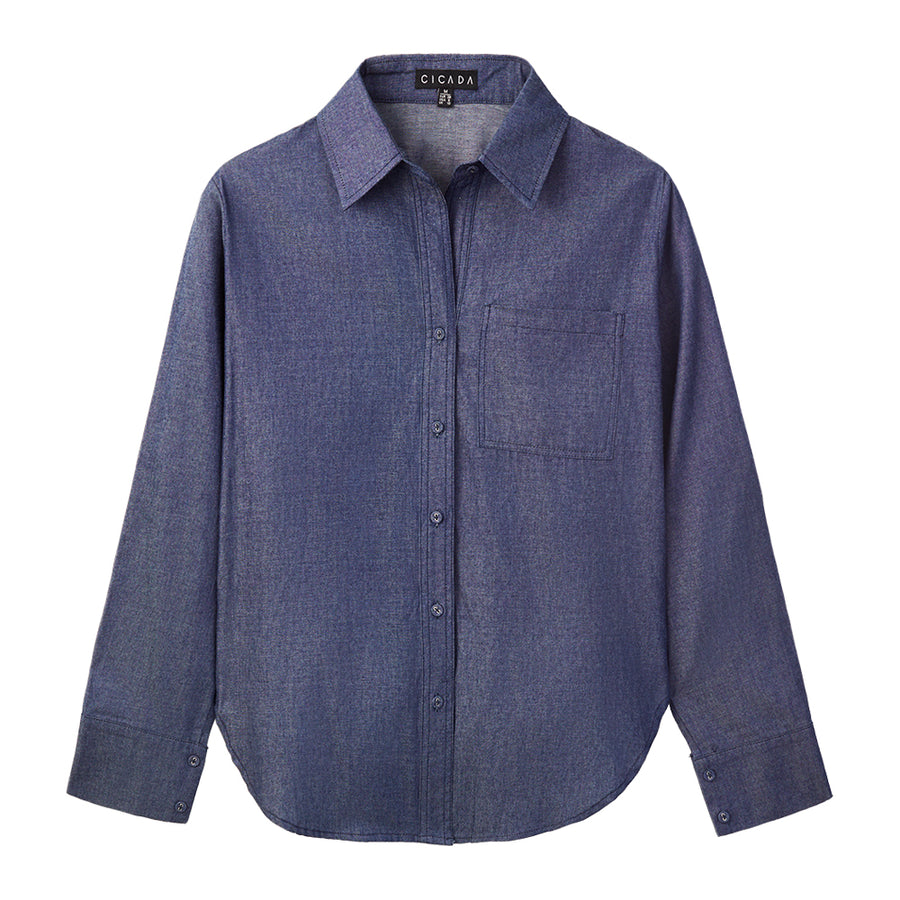 This light blue denim shirt combines a soft fabric with expert tailoring for lasting comfort and style. Featuring a classic collar and front button closure, it offers a polished look suitable for various occasions. The front pocket adds practical detail, while the long sleeves provide versatile wearability. This shirt balances timeless design with modern comfort.