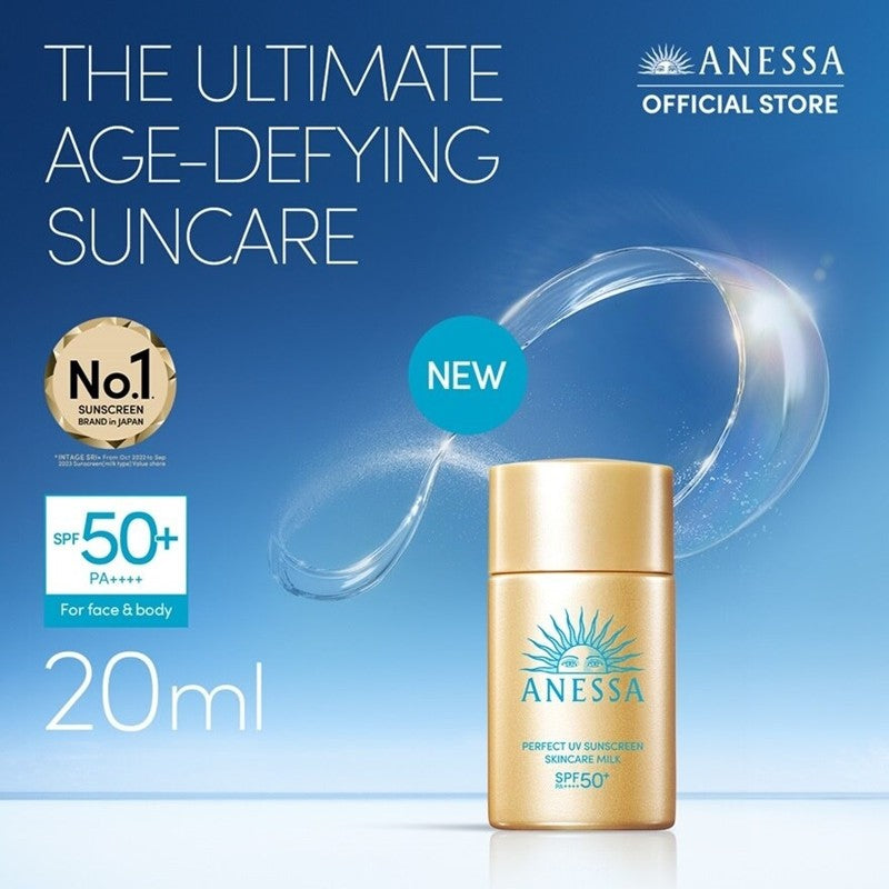 ANESSA Perfect UV Sunscreen skincare milk not only blocks the ultraviolet light, but also provides effective skin care power! Formulated with Triple Defense Technology that strengthen the UV protection veil with heat,sweat and water. Also, it incorporates 50% beauty ingredients, which immediately infuses the skin with moisture and repairs. The texture is gentle and comfortable. 50% skincare formula to prevent wrinkles and skin aging thatcan be used as a makeup primer on face. Easily removable with soap milk. SPF50+ PA++++ Its airy touch without leaving white spots or stiffness on skin Refreshing fragrance of citrus soap