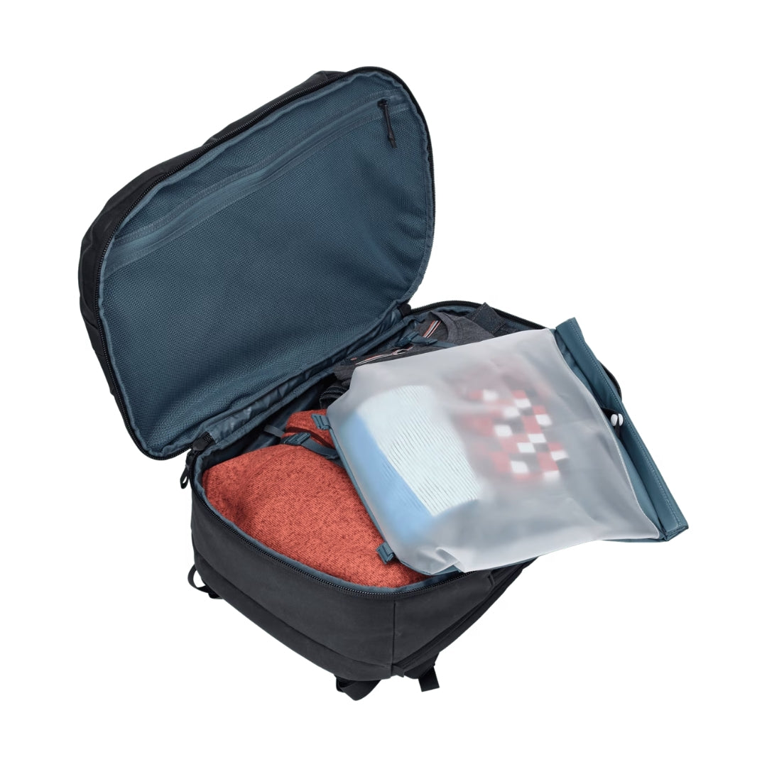 The backpack's removable rolltop bag has a TPU lining that ensures odor, moisture and dirt doesn't spread to the rest of the bag. It's also easy to clean and is perfect for storing sports gear or dirty clothes. The carry-on bag has dedicated areas for electronics storage and a water bottle pocket. The Thule Aion Sling (sold separately) can be used together with this travel backpack as a hip belt for extra weight-bearing support and quick access to essential items.