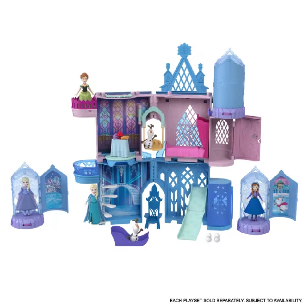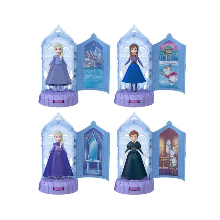 Disney Frozen Elsa gets a magical twist in this Disney Frozen Spin & Reveal unboxing experience! First open the snowflake to reveal a themed play scene with mystery silhouettes. Next spin the package to find 5 mystery bags filled with 5 accessories and 5 stickers. The final reveal is an Elsa fashion doll in a beautiful movie-inspired outfit! Kids can also decorate the play scene and imagine stories with it as a backdrop. Doll cannot stand alone.