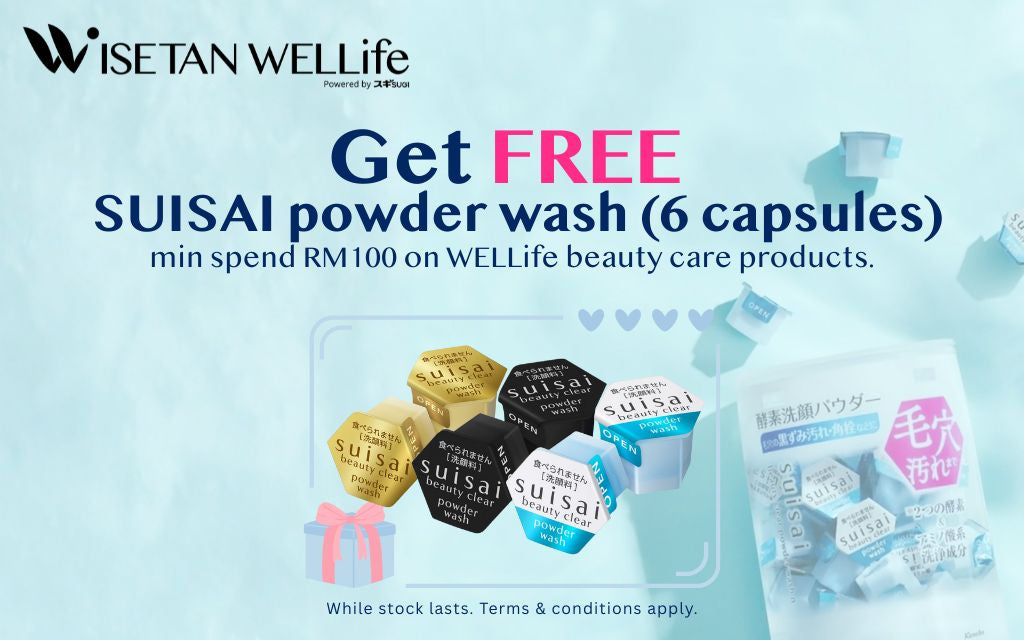 Get Suisai powder wash free trial kits with min. spend on WELLife beauty care products.