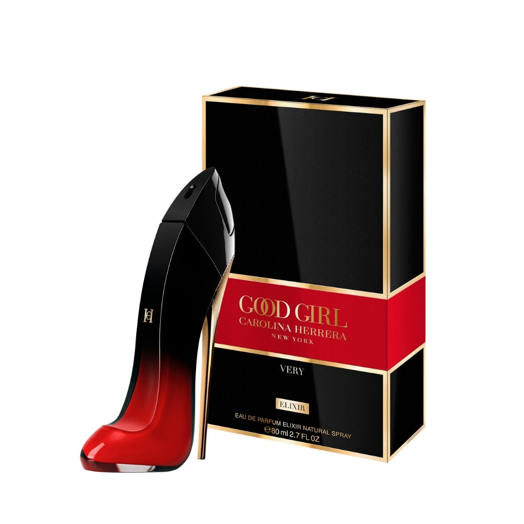 Step into pure temptation with Very Good Girl Elixir, a sensual, more intense interpretation of Very Good Girl, housed in a seductive red-to-black gradient bottle. More addictive than ever, this bold new addition to the Good Girl family reveals the multifaceted nature of modern femininity with a powerful ambery, fruity and floral blend of sensuous black cherry, red rose and radiant vanilla.