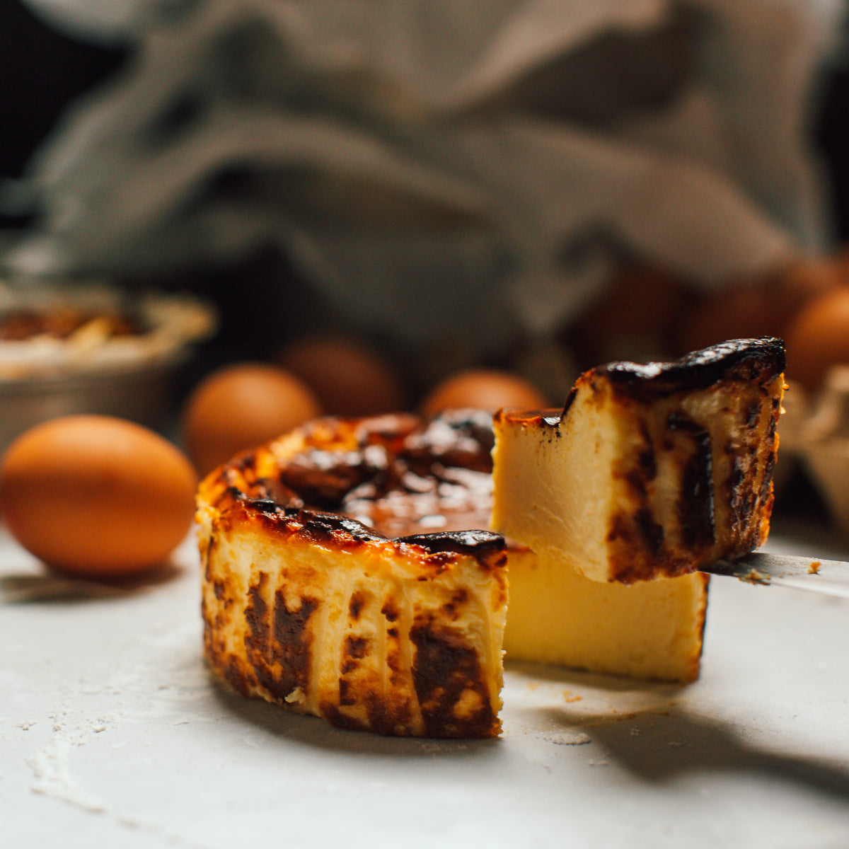Basque burnt cheesecake is a crustless cake made out of 5 humble ingredients: cream cheese, cream, sugar, eggs, and flour. What´s truly unique about this dessert happens during its preparation; because it’s cooked fast and at a high temperature, it remains creamy and smooth in the middle but acquires a caramelized (almost burnt) outer crust. This results in an explosive combination of flavors and textures that seduces and surprises in equal measures.
